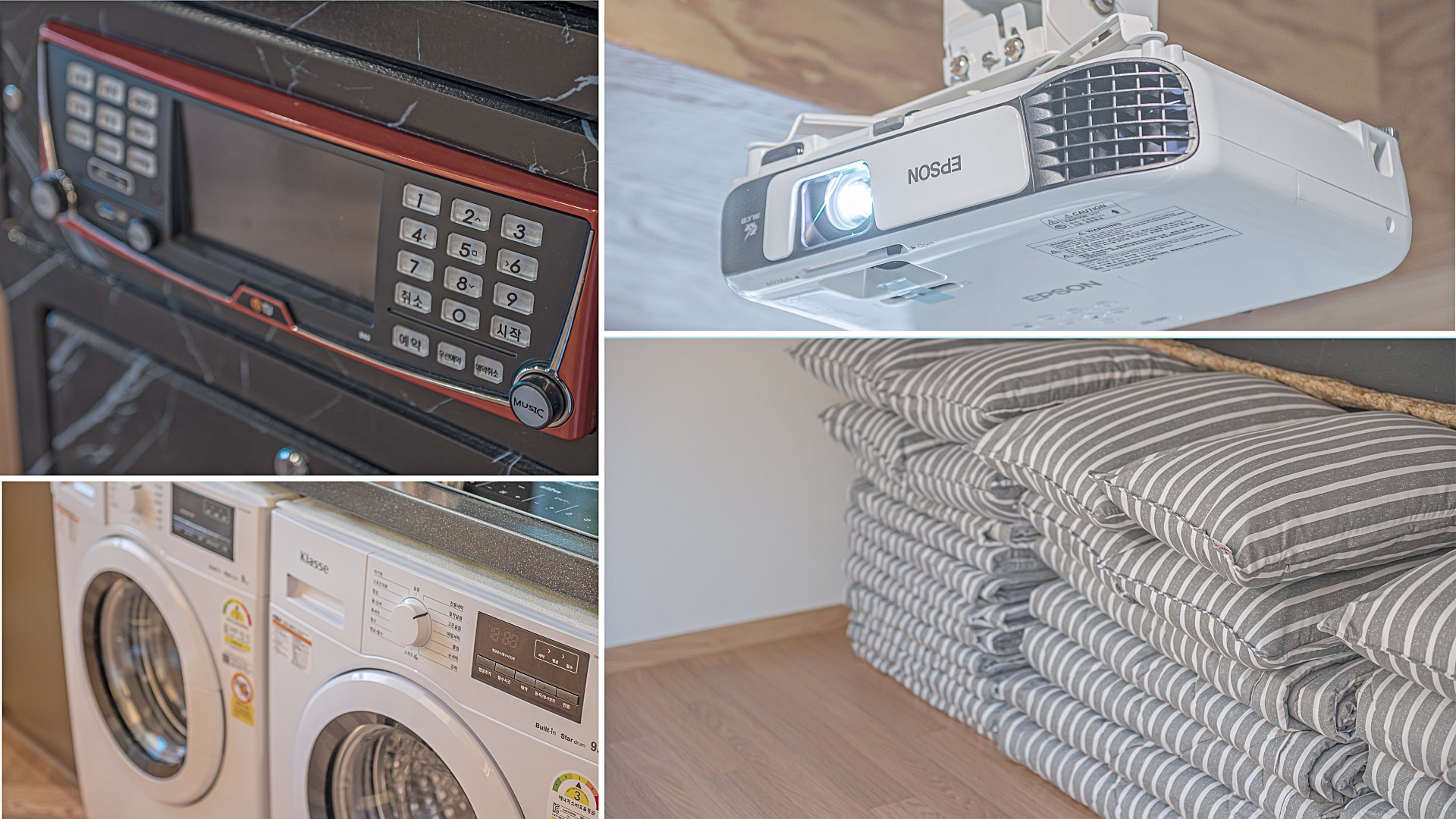 - TV, 침대, 소파, 에어컨, 냉장고, 아일랜드식탁, 전자렌지, 주방기구일체, 식기류일체, 정수기, Wi-Fi, 샤워실3, 화장실4